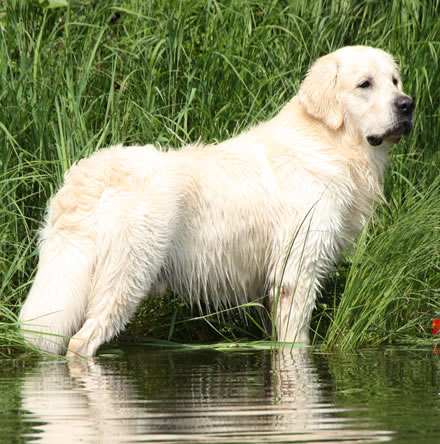We are so happy to welcome Haydain to our Golden family. Upon his arrival following the long trip from Hungary, he pranced out of his crate as if to say "Hi, I'm here"! Haydain is such a happy-go-lucky boy. He is very sociable, loveable and just a huge lap dog. We are greatful to our friend Krisztina Suli from Bonett Bride Goldens for allowing this special boy to come all the way to Canada.